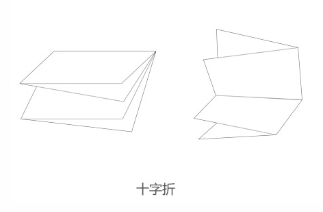 十字折其實(shí)并不是很常見,一般是一些有這種要求的企業(yè)才會選擇這種折頁的方式。這種折是先左右對折,再垂直對折,這樣在我們展開折頁的時候就會看到一個十字形狀的折線。